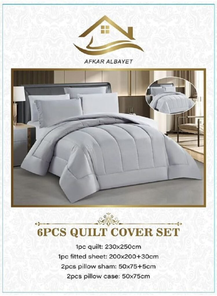 مفرش سرير لحاف نفرين 6قطع وجهين رصاصي
