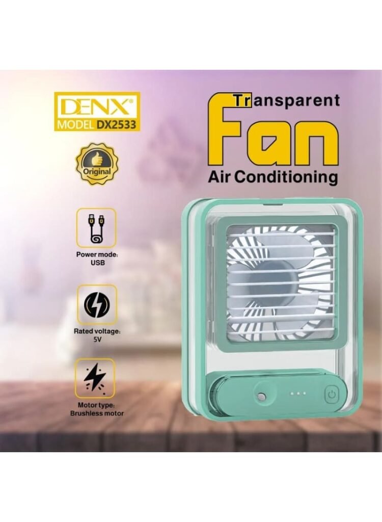 دينكس مروحه صغيرة مع بخاخ رذاذ وإضاءة LED تعمل بالبطارية USB قابلة لإعادة الشحن لون اخضر DX2533
