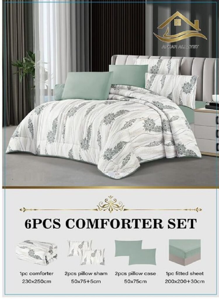 مفرش سرير لحاف نفرين 6قطع تيفاني وابيض مشجر
