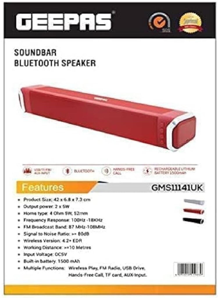 جيباس سماعة محمولة مكبر صوت بخاصية بلوتوث قابلة للشحن GMS11141UK
