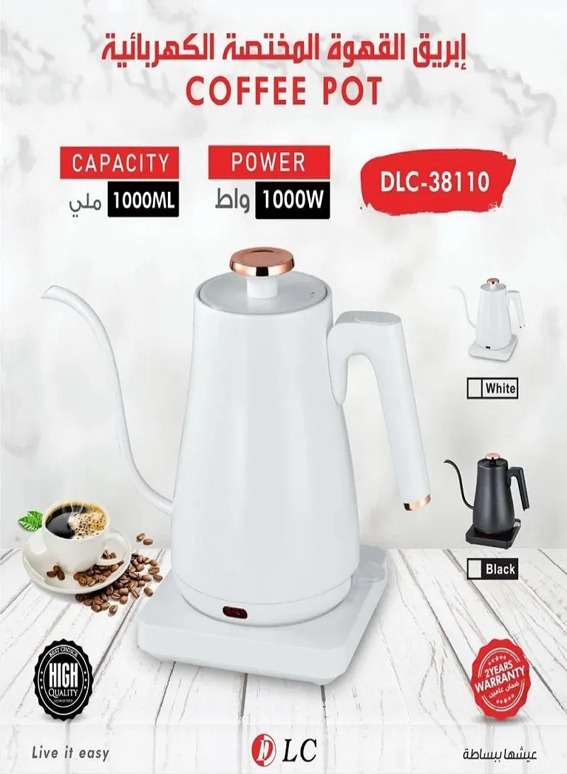 لا تتردد! احصل على إبريق قهوة مختصة كهربائي DLC-38110 الآن واستمتع بمذاق قهوتك المفضل بسهولة ضمن تصنيف أجهزة المطبخ / أجهزة تحضير القهوة.