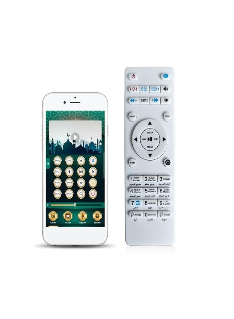 • تحكم سهل ومريح: يأتي مع ريموت وتحكم كامل لتسهيل اختيار السورة أو القارئ أو تشغيل الملفات الصوتية، مما يجعله مناسبًا لكبار السن أو الأسرة جمعاء.