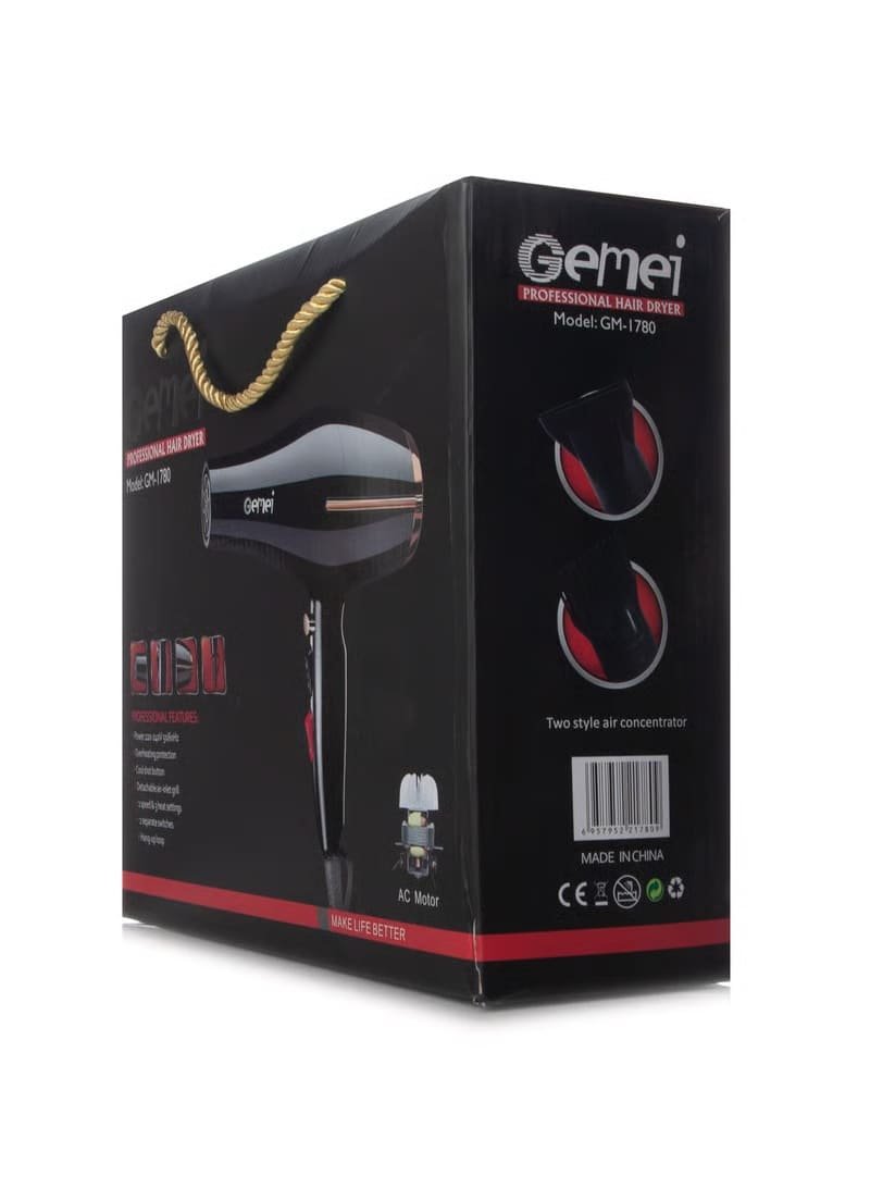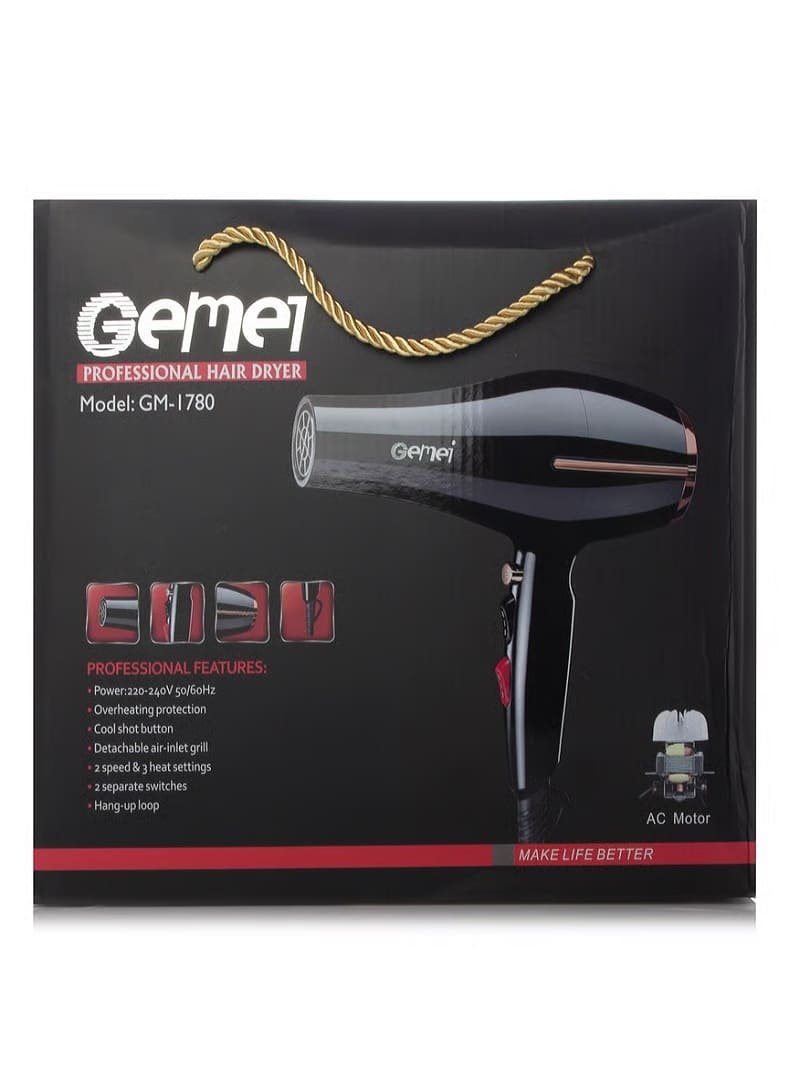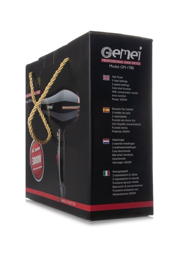 تخيلي أنكِ تحصلين على تصفيف احترافي في المنزل كل يوم، بسهولة وسرعة! مع مجفّف الشعر Gemei GM-1780، يمكنكِ تجفيف شعرك وتشكيله بدقة وكفاءة بفضل قوته العالية التي تصل إلى 3000 واط.