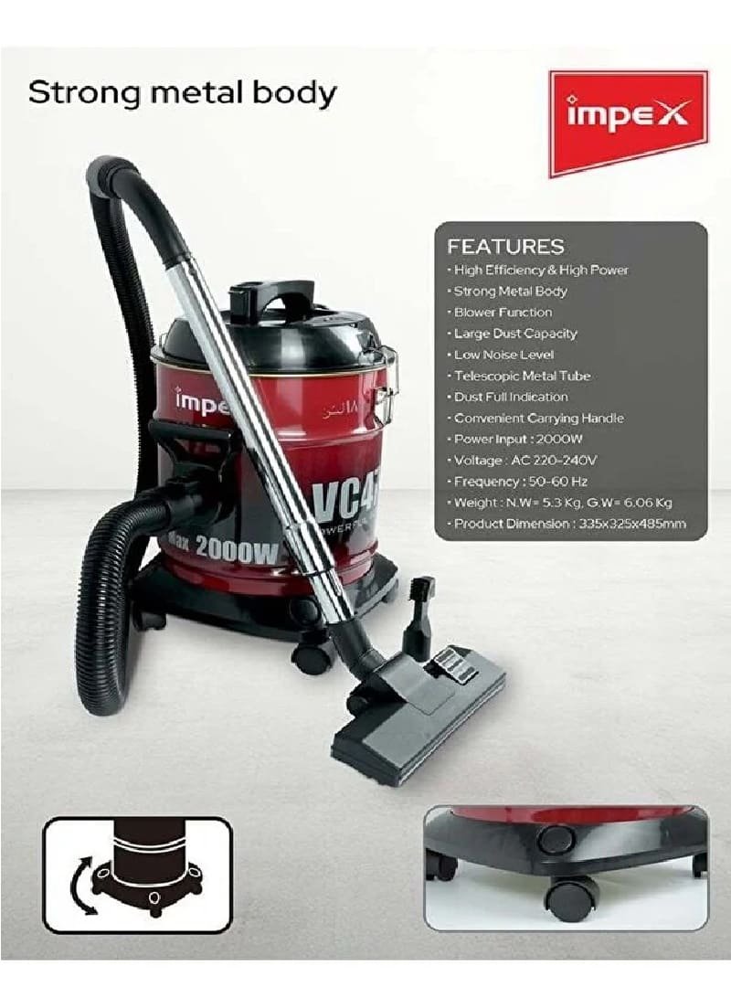 امبكس مكنسة كهربائية برميل 2200وات VC 4701 أسود