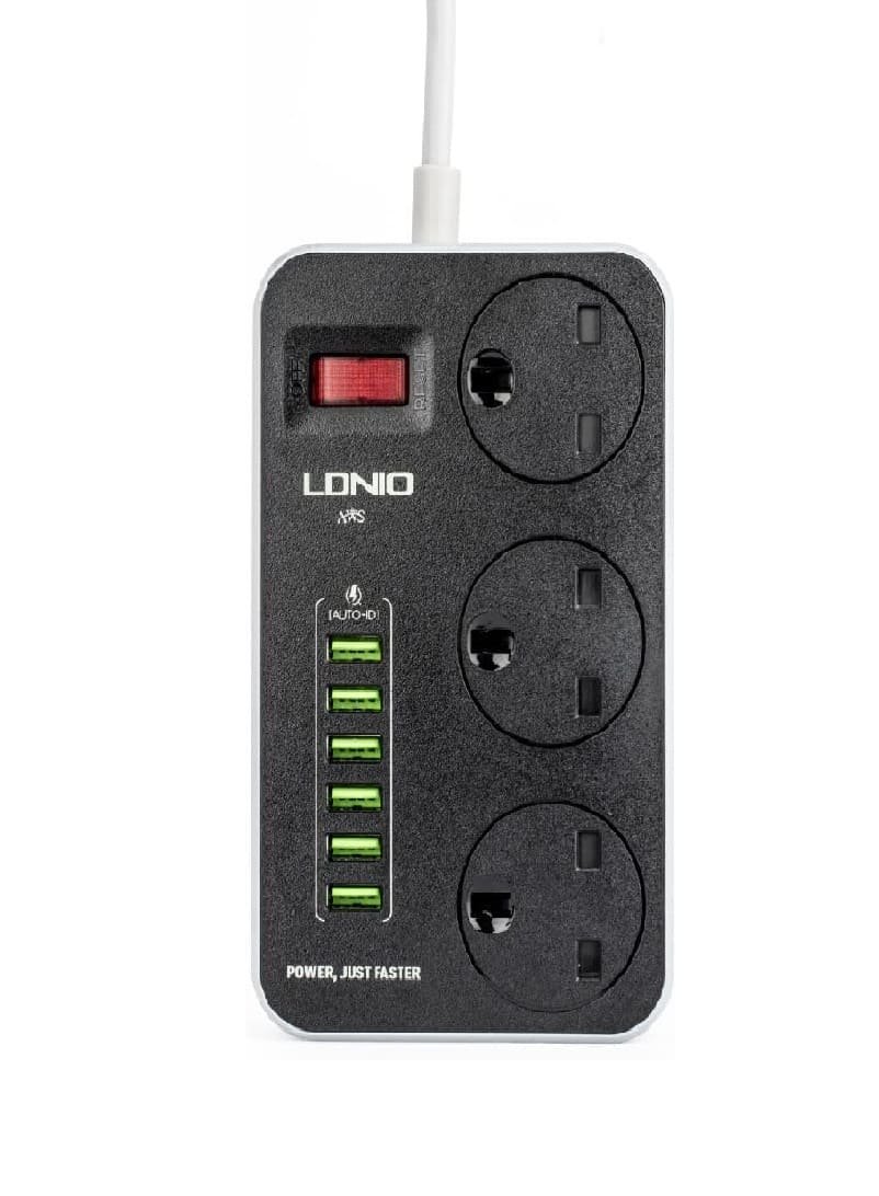 توصيلة كهربائية موزع طاقة SC3604 – ثلاث مقابس + 6 منافذ USB لشحن وتشغيل متعدد الأجهزة ليدنو