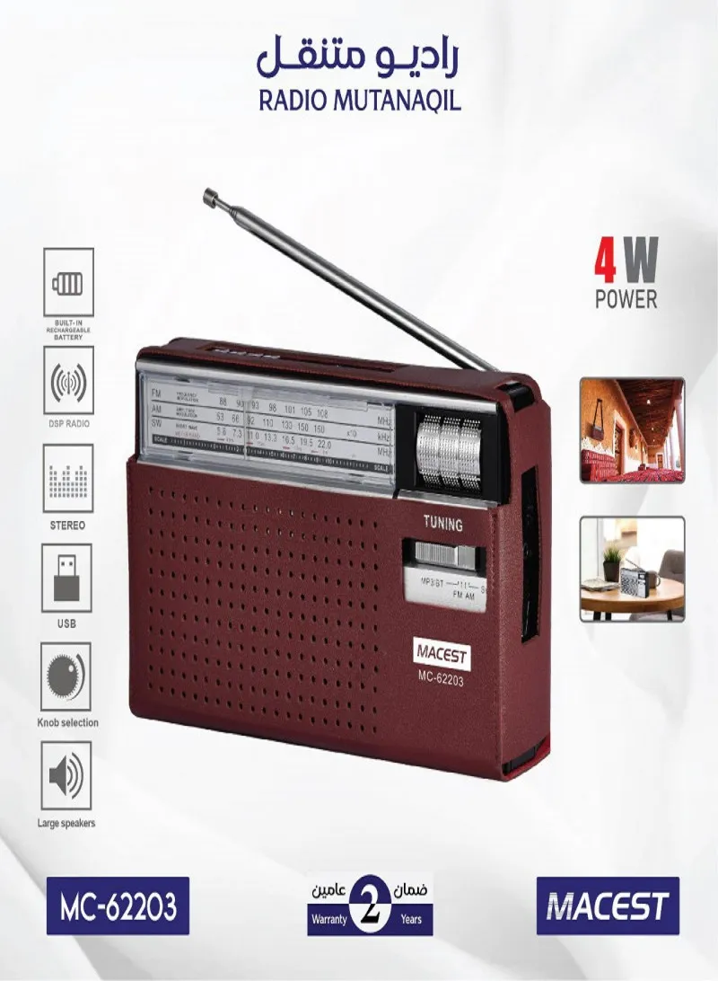 راديو بلوتوث محمول ماكيست MC-62203 – استقبال واضح وتصميم عملي للاستخدام اليومي