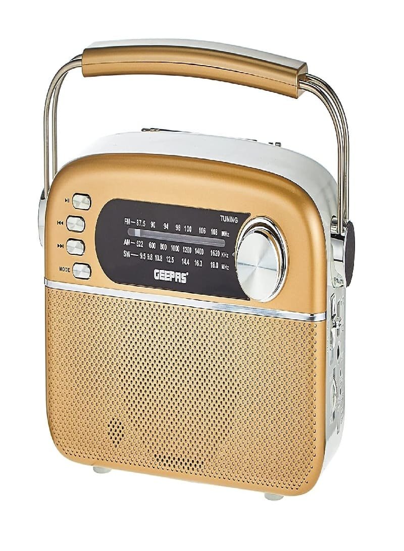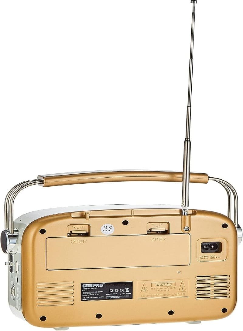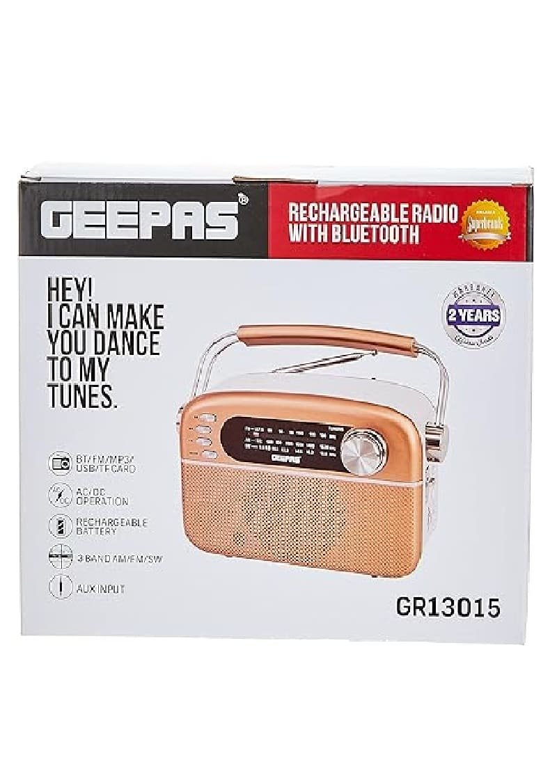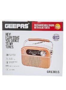 احصل على تجربة صوتية متعددة الاستخدامات مع راديو قابل للشحن مع بلوتوث جيباس GR13015، الجهاز الذي يجمع بين الراديو التقليدي، تشغيل الموسيقى عبر البلوتوث،