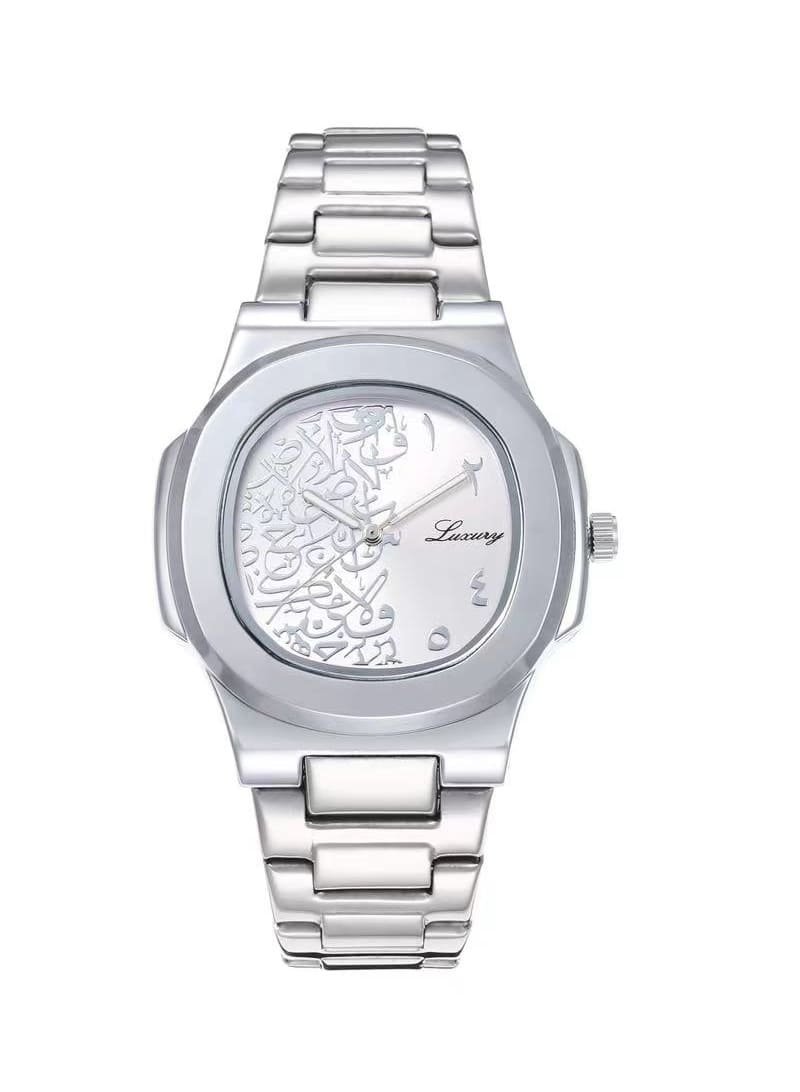 ميناء فضي أنيق مع مؤشرات بلون فضي واضح تمنح مظهرًا راقيًا ومتناسقًا.