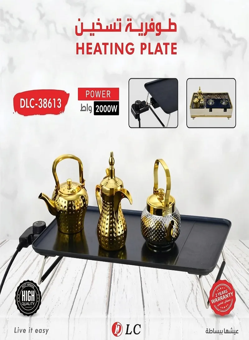 استمتع بتسخين الشاي والقهوة بسهولة مع طوفيرية للتسخين كهربائية DLC-38613 المصممة لتوفير حرارة قوية وسريعة لمختلف الأواني. بفضل قدرتها العالية وتصميمها العملي، تعتبر خيارًا مثاليًا للاستخدام في المنزل، الجلسات، أو المناسبات، مع أداء ثابت وكفاءة عالية في التسخين.