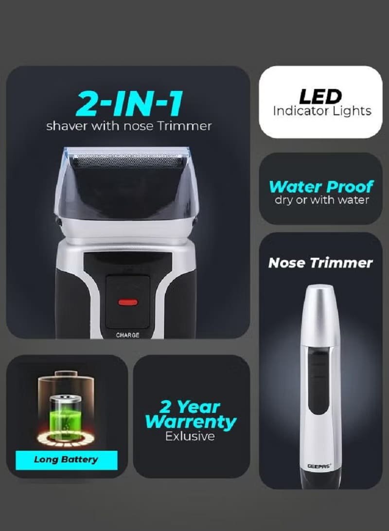 ماكينة حلاقة للتنعيم والانف رجالية 2 في 1 جيباس GSR110N– شفرات دقيقة وتشذيب أنف مدمج