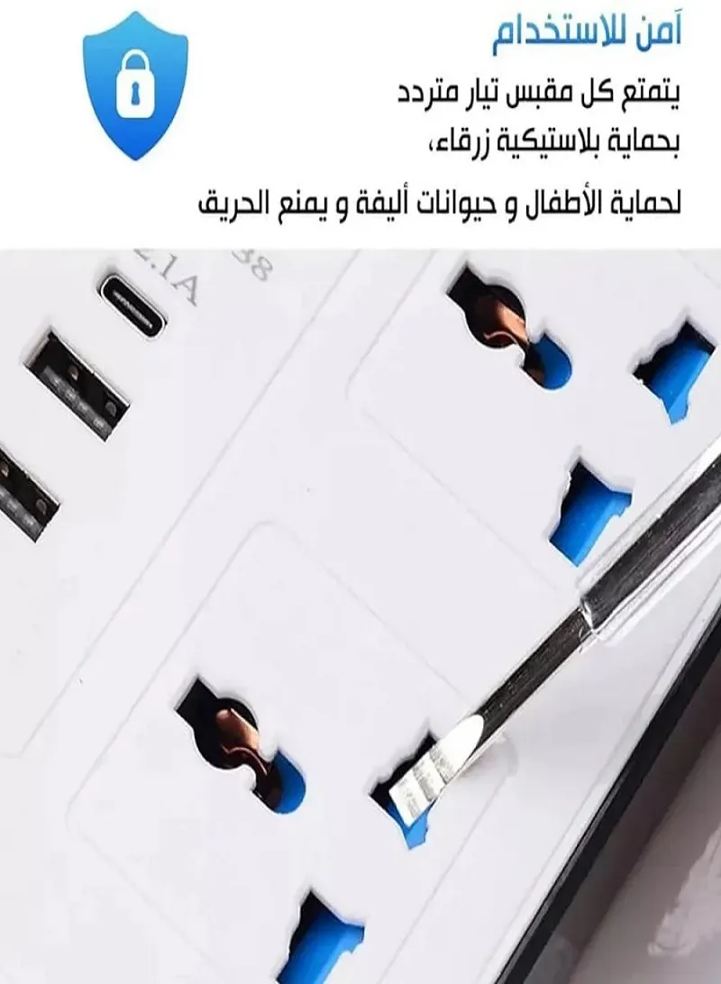 أمان عائلي متكامل: مزودة بأبواب غلق داخلية (Safety Shutters) لحماية الأطفال من العبث بالمقابس، بالإضافة إلى مفتاح تحكم رئيسي للإغلاق الكلي بلمسة واحدة.